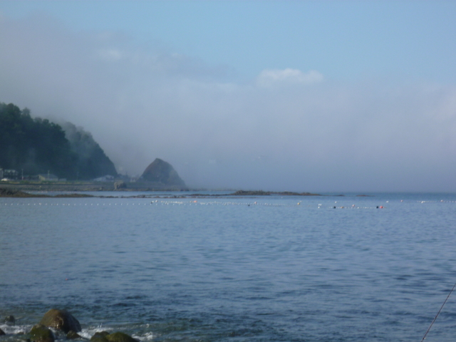 限りなく透きとおった水面。遠くには樺太・択捉の日本固有領土。 |